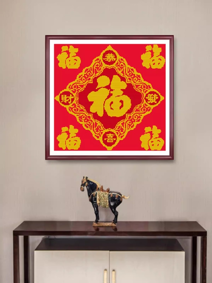 อุปกรณ์ : ผ้าปักสีแดง, เข็ม, ด้ายปักจีน, ผังลายสี